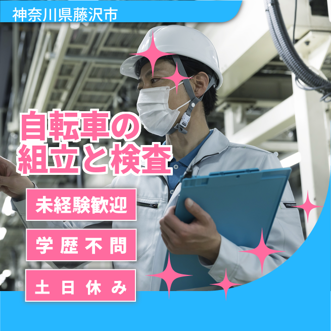 給与詳細 月収例 240,000円 日給例 12,000円 勤務地 神奈川県藤沢市 仕事内容 【自転車の組立/目視検査・梱包(日勤)】