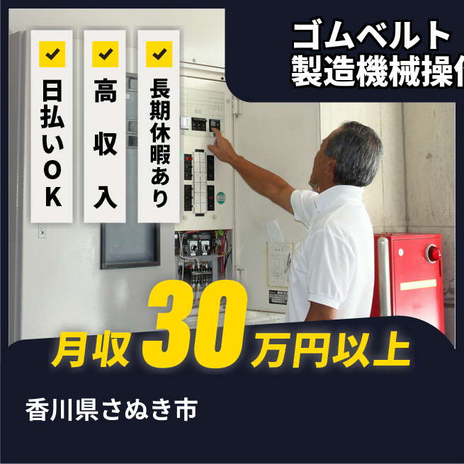 給与詳細 月収例 300,000円 日給例 12,000円 勤務地 香川県さぬき市 仕事内容 【機械オペレーター/免許要(2交替)】
