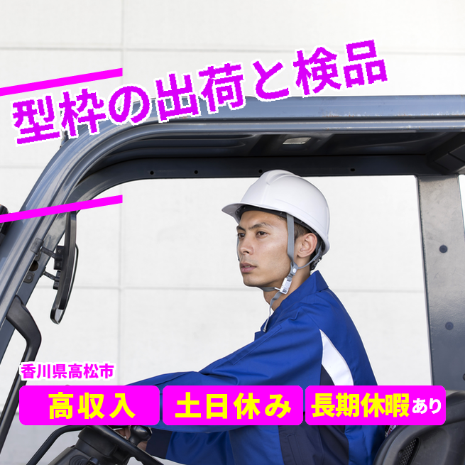 給与詳細 月収例 251,000円 日給例 12,000円 勤務地 香川県高松市 仕事内容 【型枠の出荷・検品(日勤)】
