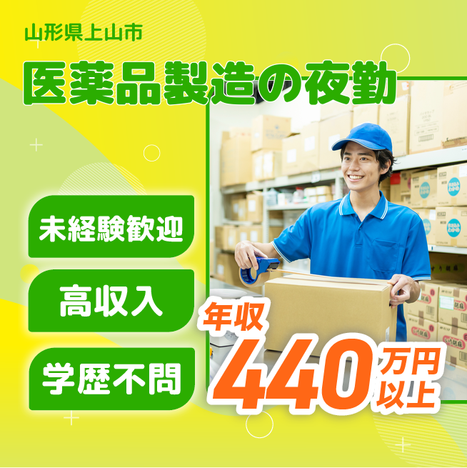 給与詳細 年収例 4,464,000円 月収例 372,000円 勤務地 山形県上山市 仕事内容 【医薬品の製造サポート(夜勤)】