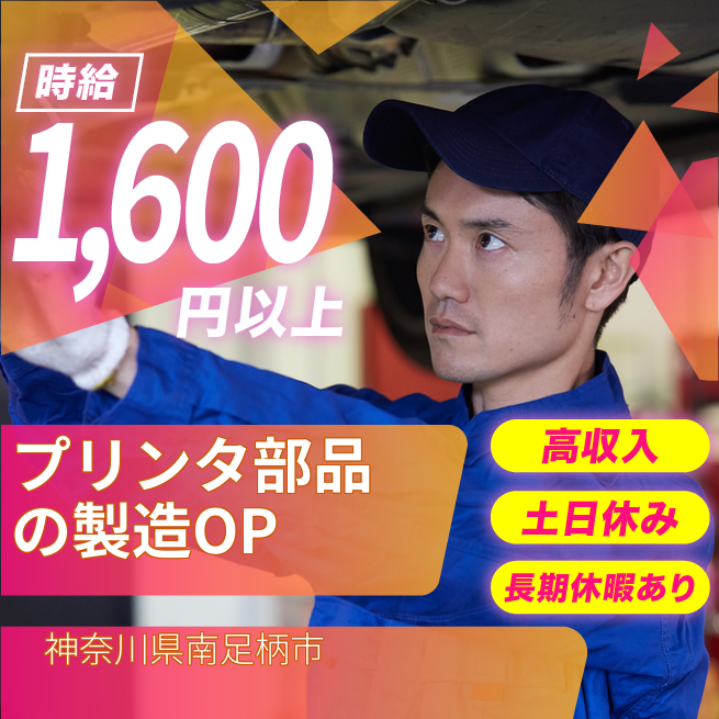 給与詳細 月収例 252,000円 時給例 1,600円 勤務地 神奈川県南足柄市 仕事内容 【プリンタ部品製造オペレーター(2交替)】