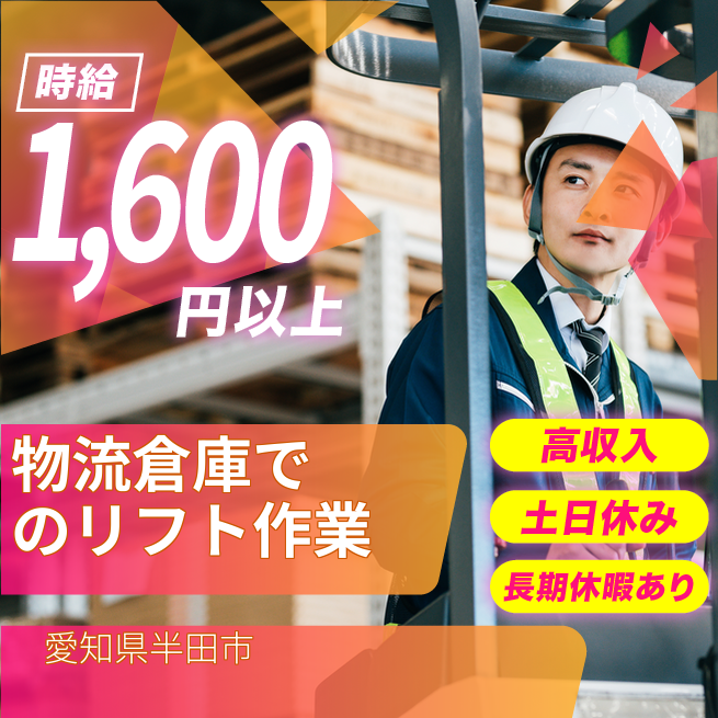 給与詳細 月収例 256,000円 時給例 1,600円 勤務地 愛知県半田市 仕事内容 【免許要/フォークリフト作業(日勤)】