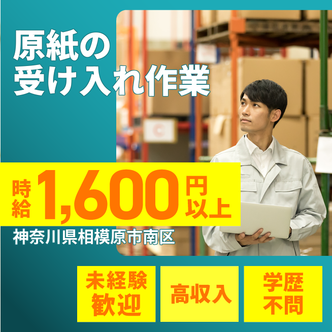 給与詳細 月収例 192,000円 時給例 1,600円 勤務地 神奈川県相模原市南区 仕事内容 【原紙の受け入れ作業(日勤)】