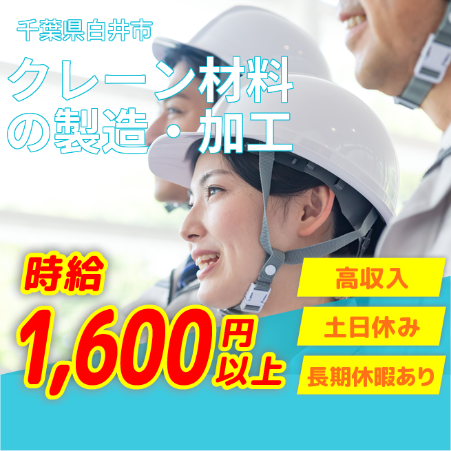 給与詳細 月収例 256,000円 時給例 1,600円 勤務地 千葉県白井市 仕事内容 【機械オペレーター/加工・製造(日勤)】