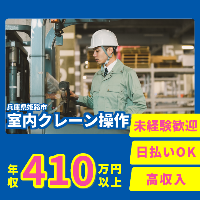 給与詳細 年収例 4,152,000円 月収例 346,000円 勤務地 兵庫県姫路市 仕事内容 【室内クレーンの操作等(2交替)】
