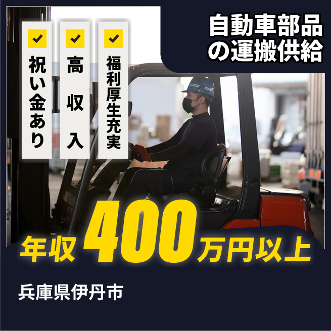 給与詳細 年収例 4,056,000円 月収例 338,000円 勤務地 兵庫県伊丹市 仕事内容 【自動車用部品の供給・運搬(2交替)】