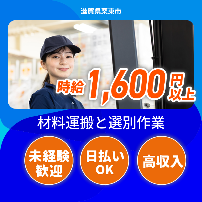 給与詳細 月収例 282,000円 時給例 1,600円 勤務地 滋賀県栗東市 仕事内容 【ピッキング・運搬(日勤)】