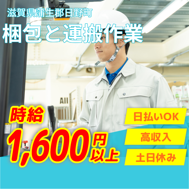 給与詳細 月収例 258,000円 時給例 1,650円 勤務地 滋賀県蒲生郡日野町 仕事内容 【梱包・運搬(日勤)】