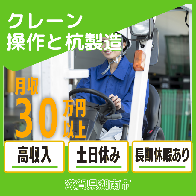 給与詳細 月収例 325,000円 時給例 1,700円 勤務地 滋賀県湖南市 仕事内容 【デリッククレーンの操作/要資格(日勤)】