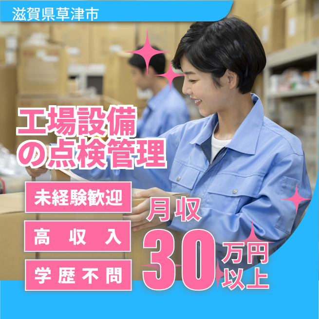 給与詳細 月収例 306,000円 時給例 1,700円 勤務地 滋賀県草津市 仕事内容 【工場の設備管理(日勤)】