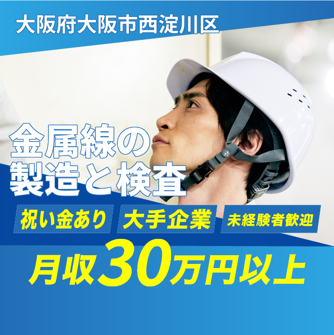 給与詳細 月収例 308,000円 時給例 1,700円 勤務地 大阪府大阪市西淀川区 仕事内容 【機械オペレーター(2交替)】