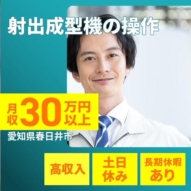給与詳細 月収例 303,000円 時給例 1,700円 勤務地 愛知県春日井市 仕事内容 【射成型機オペレーター/要資格(日勤)】