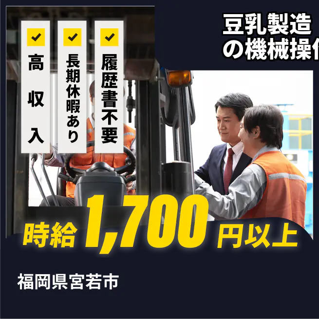 給与詳細 月収例 273,000円 時給例 1,700円 勤務地 福岡県宮若市 仕事内容 【フォークリフト作業/要資格(3交替)】