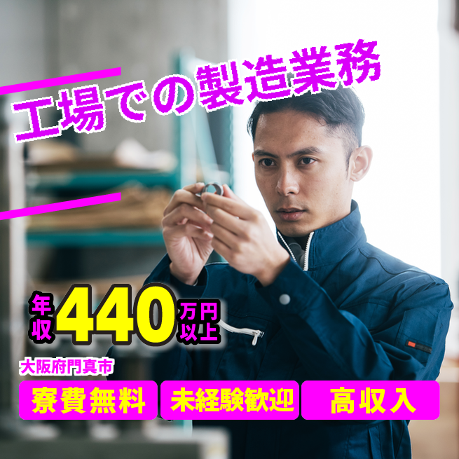 給与詳細 年収例 4,440,000円 月収例 370,000円 勤務地 大阪府門真市 仕事内容 【製造/組立・検査・部材供給(日勤・交代制)】