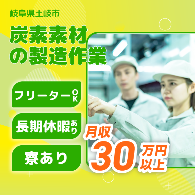 次世代炭素素材の製造業務に携われる、やりがいのあるお仕事です。