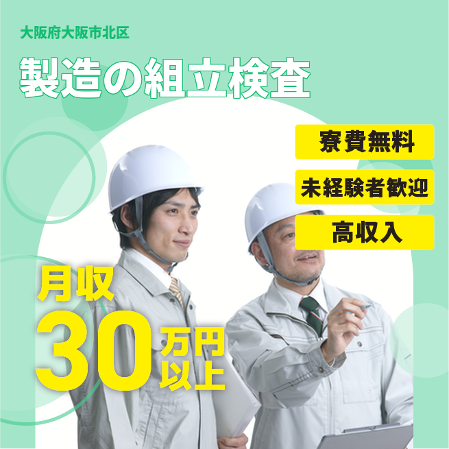 給与詳細 月収例 320,000円 時給例 2,000円 勤務地 大阪府大阪市北区 仕事内容 【製造業務(日勤/夜勤/交代制)】