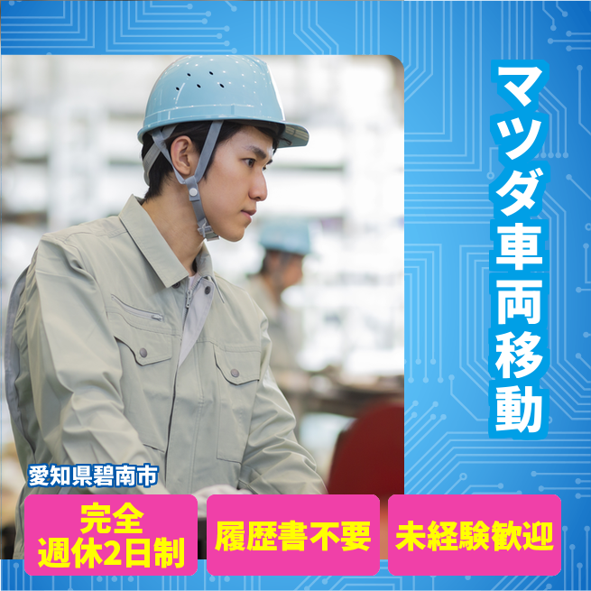 給与詳細 月収例 203,500円 日給例 10,175円 勤務地 愛知県碧南市 仕事内容 構内車両移動作業 車両ピッキング、車両ロット組作業。マツダ商品車を保管エリア内の指定された場所へ運転し移動させる業務、車両のピッキング業務、仕分けラベルを貼る業務。その他付随業務。