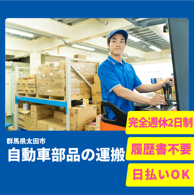 給与詳細 月収例 292,500円 日給例 12,000円 勤務地 群馬県太田市 仕事内容 リーチフォークでの運搬業務、入荷作業、商品の検品やピッキング、荷揃え、出荷作業(トラックへの積み込み)、空容器の仕分け作業などを行っていただきます。