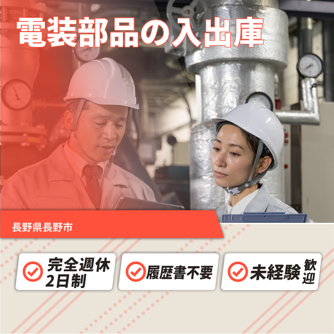 給与詳細 月収例 234,000円 時給例 1,200円 勤務地 長野県長野市 仕事内容 ピッキング、部品の入出庫作業