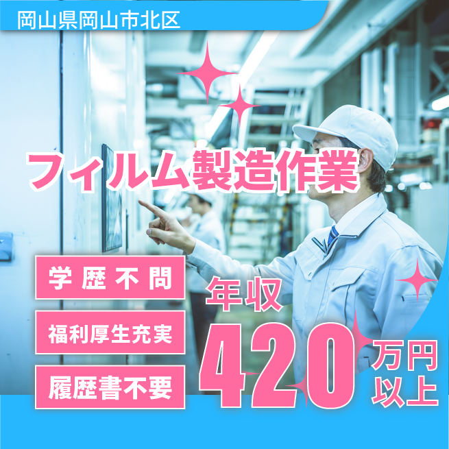スマホなどのデバイスに使われるフィルム製品を製造する企業でのお仕事です!