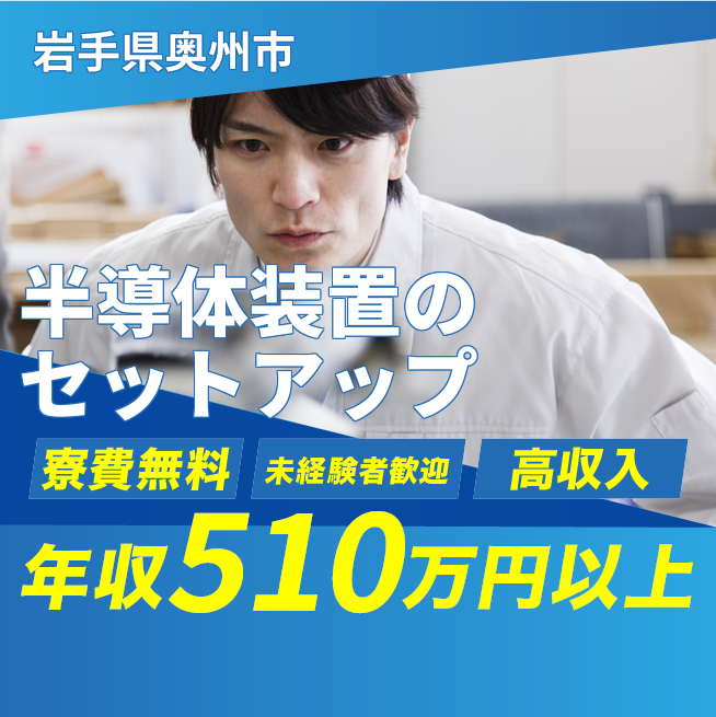 給与詳細 例 0円 月収例 504,053円 勤務地 岩手県奥州市 仕事内容 【未経験から世界を舞台に活躍!】半導体装置の「命」を吹き込むスタートアップ・エンジニア。安定の請負チームで、一生モノの技術を手に。
