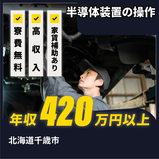 給与詳細 年収例 4,263,264円 月収例 355,272円 勤務地 北海道千歳市 仕事内容 ①自分で半導体製造装置のオペレーションを行う