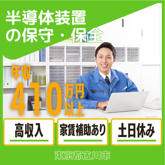 給与詳細 年収例 4,189,032円 月収例 349,086円 勤務地 東京都立川市 仕事内容 半導体製造装置のフィールドエンジニア業務全般。