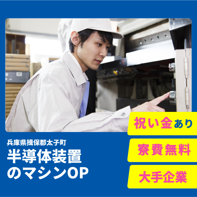 給与詳細 例 0円 時給例 1,225円 勤務地 兵庫県揖保郡太子町 仕事内容 半導体装置のマシンオペレーター(検査業務)