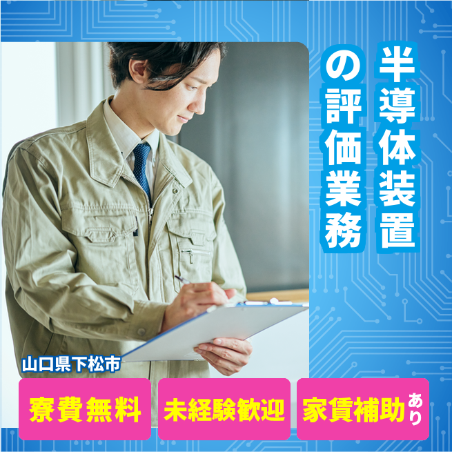 給与詳細 月収例 230,310円 日給例 10,500円 勤務地 山口県下松市 仕事内容 測定器を使用した評価業務(評価機器のオペレーション、メンテナンス、データ入力作業等)、
