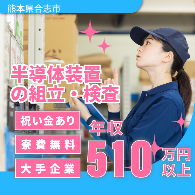 ※各種手当を含む 交通費 支給あり 応募の流れ 本ページ内<応募する>ボタンより、必要項目をご入力の上、ご応募ください。 勤務地 【勤務地】熊本県合志市福原 勤務時間 【勤務地】日勤:08:30~17:30