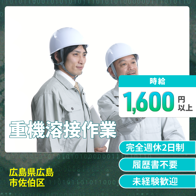 給与詳細 月収例 276,500円 時給例 1,650円 勤務地 広島県広島市佐伯区 仕事内容 建設現場にある油圧ショベルの溶接業務を行います。研修期間は充分ある為、製品の事をじっくり学んでから業務に移れます。、製缶棟内製缶工程(大型40t・特機の使用も有)