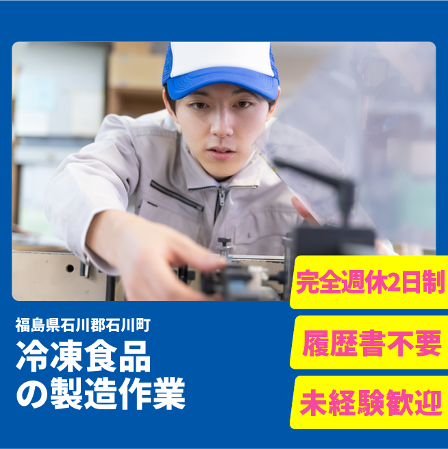 給与詳細 月収例 207,000円 日給例 10,350円 勤務地 福島県石川郡石川町 仕事内容 食品工場内にて、冷凍食品の製造業務を担当していただきます。主な作業は、材料の準備・仕込み、盛り付けラインでの盛り込み、包装・箱詰め作業などです。そのほか、これらに付随する業務もお願いします。