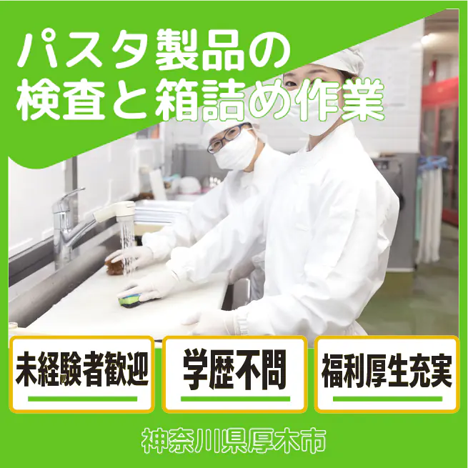 【パスタ製品の検査と箱詰め作業】資格経験不要