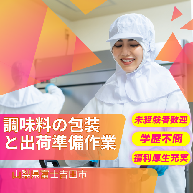 調味料製品の包装からパレット積み、ラッピングまでを担当する日勤の食品製造ワークです。