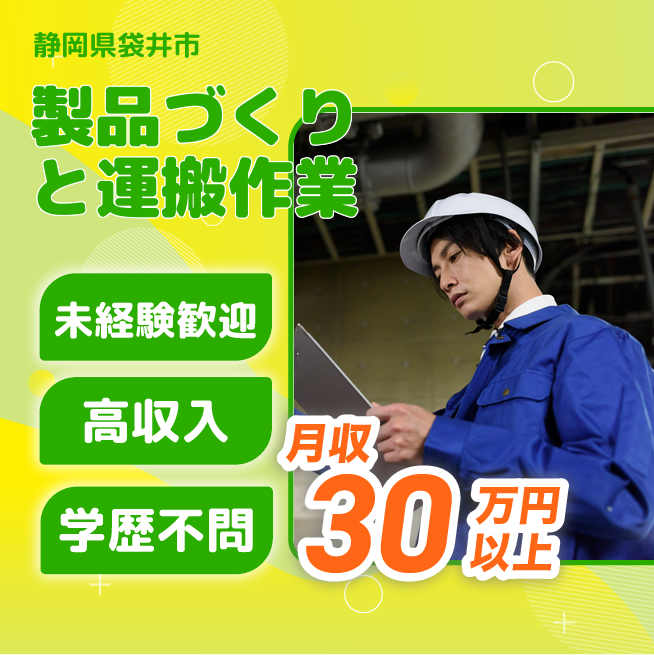 給与詳細 月収例 334,700円 日給例 11,200円 勤務地 静岡県袋井市 仕事内容 【業務概要】