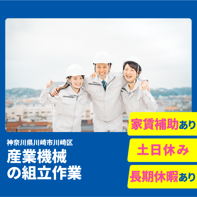 給与詳細 月収例 245,000円 日給例 12,250円 勤務地 神奈川県川崎市川崎区 仕事内容 ウィルオブ・ワークの正社員としての取引先の産業用機械製造工場で勤務いただきます。