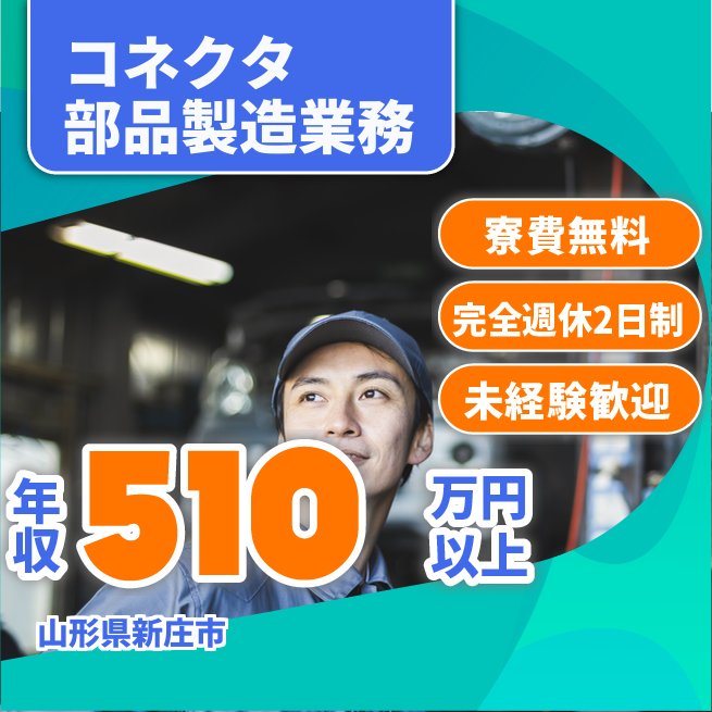 給与詳細 年収例 5,148,000円 月収例 429,000円 勤務地 山形県新庄市 仕事内容 【LIM成形コネクタ部品製造に関わる業務全般 (成形機MOP・バリ取り・プライマー塗布・外観検査)】