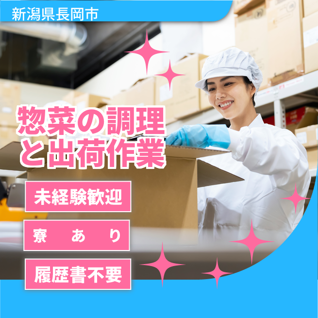 給与詳細 月収例 223,980円 時給例 1,140円 勤務地 新潟県長岡市 仕事内容 【美味しい惣菜づくり】