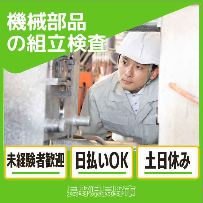 給与詳細 月収例 250,000円 日給例 10,080円 勤務地 長野県長野市 仕事内容 【機械パーツの組立・検査】