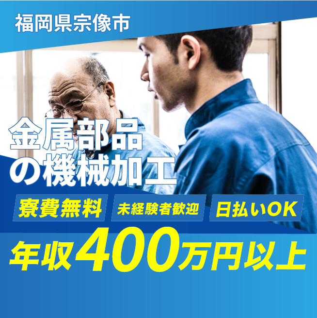 給与詳細 月収例 300,000円 時給例 1,700円 勤務地 福岡県宗像市 仕事内容 【金属部品の機械加工】