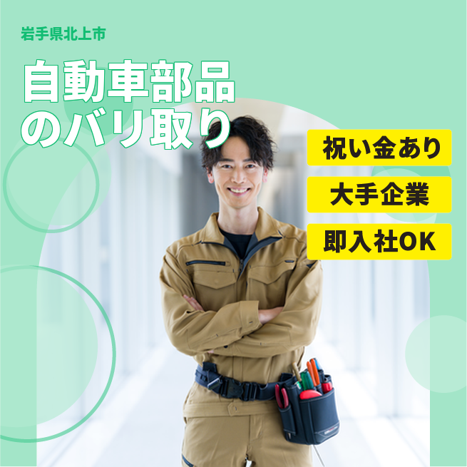 給与詳細 月収例 287,625円 日給例 12,000円 勤務地 岩手県北上市 仕事内容 【自動車部品のバリ取り】