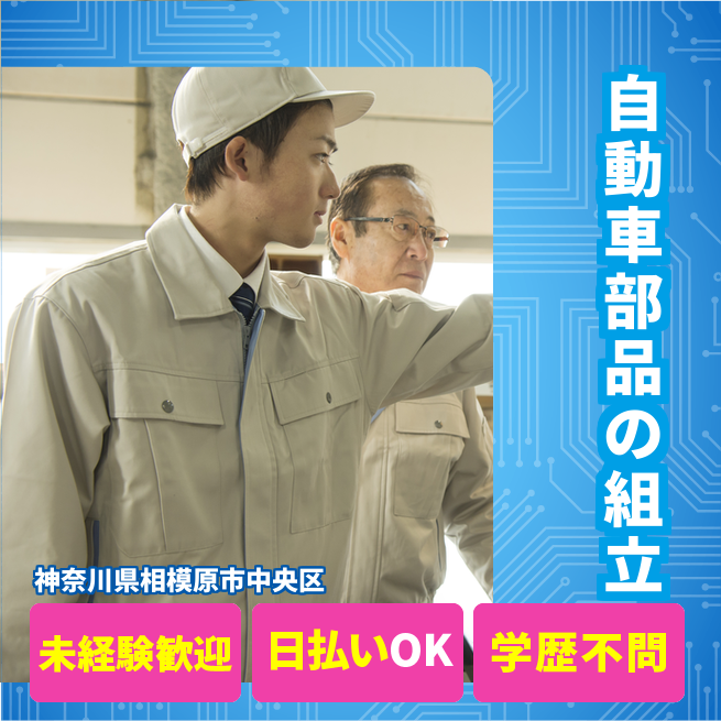 給与詳細 月収例 228,375円 日給例 11,600円 勤務地 神奈川県相模原市中央区 仕事内容 【自動車部品の組み立て・溶接業務】