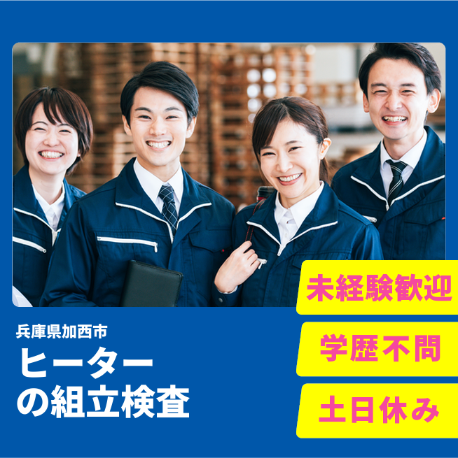 給与詳細 月収例 219,612円 日給例 10,200円 勤務地 兵庫県加西市 仕事内容 【ヒーターの組立工程】