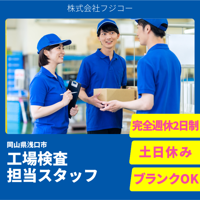 企業 株式会社フジコー 給与詳細 月収例 175,000円 時給例 1,094円 勤務地 岡山県浅口市 仕事内容 「ロール製品の検査や品質管理に長けている?」