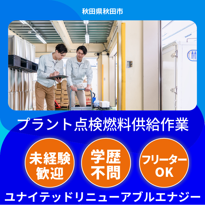 企業 ユナイテッドリニューアブルエナジー株式会社 給与詳細 月収例 180,000円 時給例 1,125円 勤務地 秋田県秋田市 仕事内容 各種プラントの点検作業や、重機を使用しての燃料供給作業を行います。