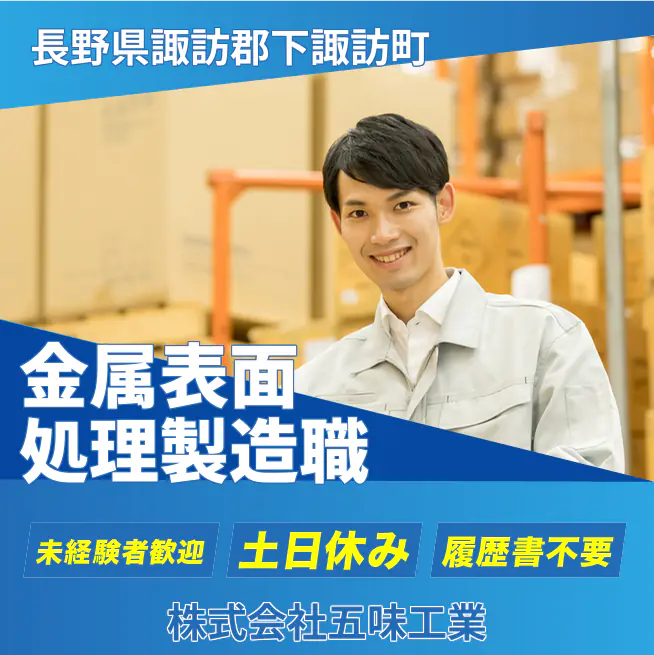 企業 株式会社五味工業 給与詳細 月収例 180,000円 時給例 1,125円 勤務地 長野県諏訪郡下諏訪町 仕事内容 精密機械部品などを製造する当社における金属加工業務をお任せします。