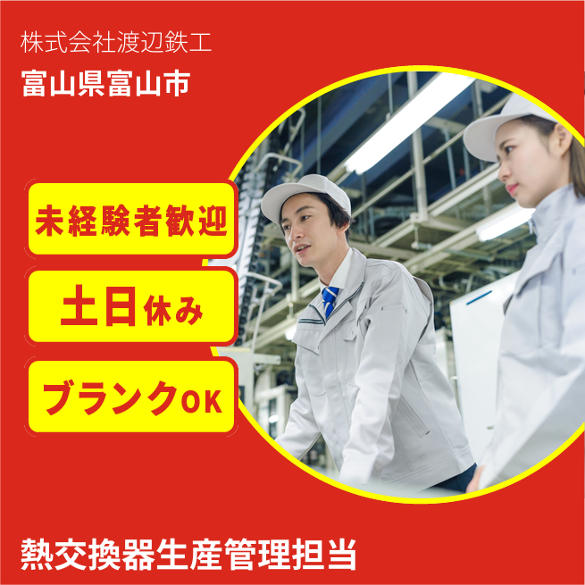 企業 株式会社渡辺鉄工 給与詳細 月収例 250,000円 時給例 1,563円 勤務地 富山県富山市 仕事内容 塔・槽類・熱交換器などを製造する当社工場にて、生産管理業務をお任せします。