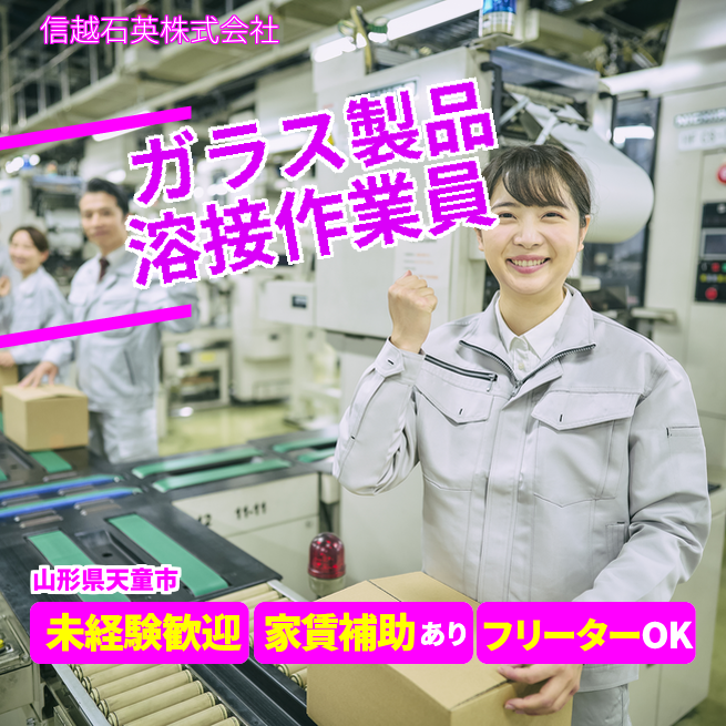 企業 信越石英株式会社 給与詳細 月収例 177,750円 時給例 1,111円 勤務地 山形県天童市 仕事内容 高純度石英ガラス製品の溶接加工作業をお任せします。