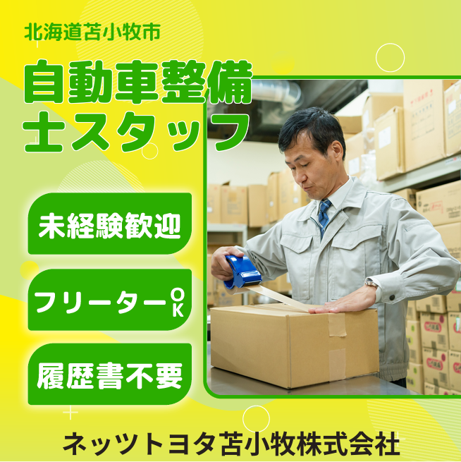 会社負担のトヨタ独自の資格・教育制度があり、入社後資格取得が可能です。また、フロントや営業等へのキャリアチェンジも可能です。 企業名 ネッツトヨタ苫小牧株式会社契約社員求人