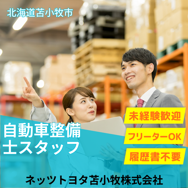 会社負担のトヨタ独自の資格・教育制度があり、入社後資格取得が可能です。また、フロントや営業等へのキャリアチェンジも可能です。 企業名 ネッツトヨタ苫小牧株式会社契約社員求人